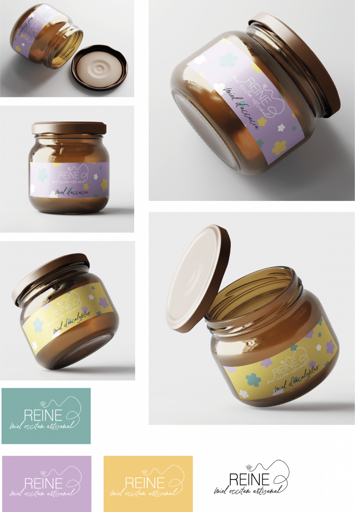 La marque de miel artisanal Reine souhaitait moderniser son identité visuelle tout en conservant son emblème principal : l’abeille. En plus de la refonte du logo, ils avaient besoin de nouveaux packagings en accord avec leurs valeurs : artisanat, authenticité, éco-responsabilité, émotion et transparence. C’est dans cette optique qu’ils ont fait appel à moi.