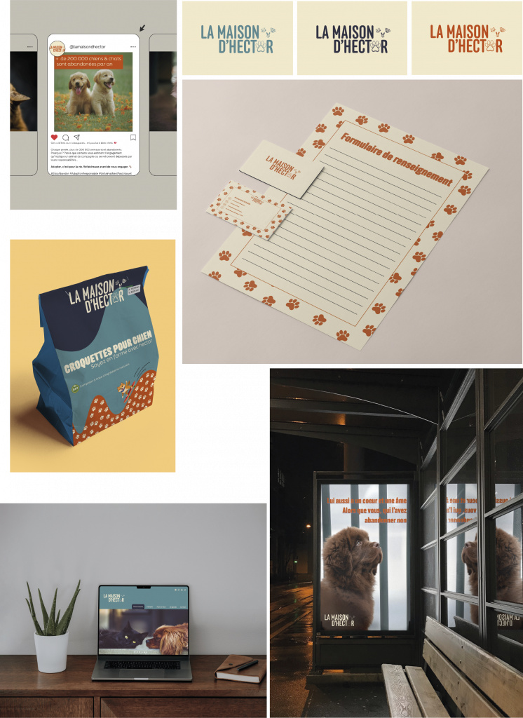 - Le « O » de Hector est remplacé par une empreinte de patte, un hommage au chien à l’origine du refuge.