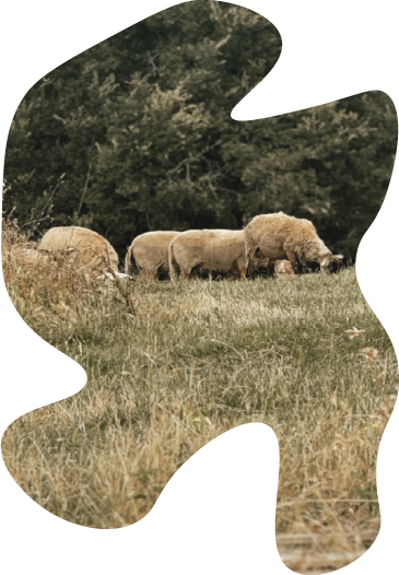 Au premier plan, un fil de barbelé flouté crée une séparation subtile, ajoutant de la profondeur à l’image et guidant naturellement le regard vers le sujet principal : un groupe de moutons paisiblement en train de brouter dans un pré. L’herbe, légèrement sèche, apporte une texture naturelle qui contraste avec la douceur du pelage des animaux.