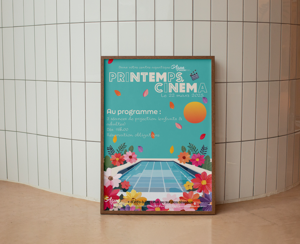 Pendant mon alternance, une stagiaire était chargée de créer un événement à la piscine. Elle a décidé d’organiser un « Aquaciné » – le concept consistait à installer un écran de projection au niveau du bassin d’apprentissage, avec trois séances prévues. Cette idée lui est venue car en mars se déroule le Printemps du Cinéma, qui propose généralement des places à 5 euros.